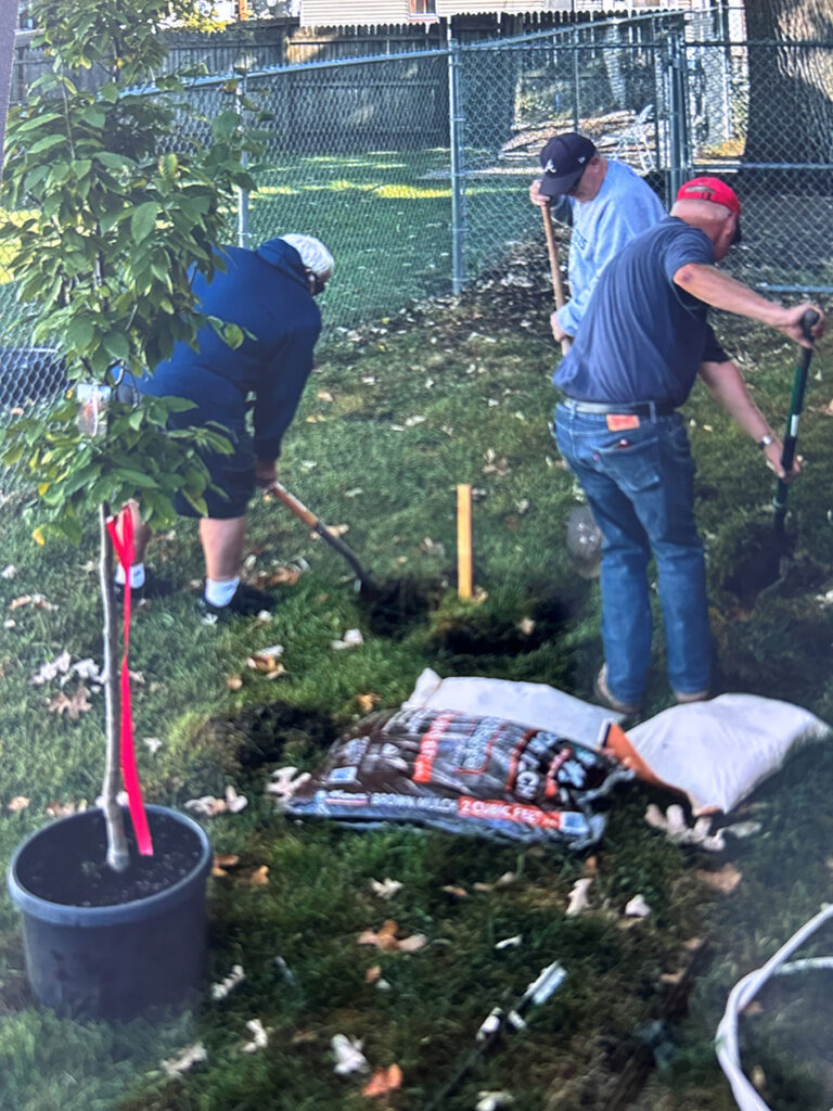 Members of St. Mary Church (Bloomington) are planting trees in celebration of the Diocese of Peoria 150th Anniversary.